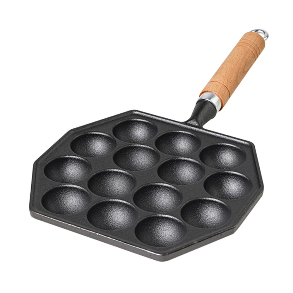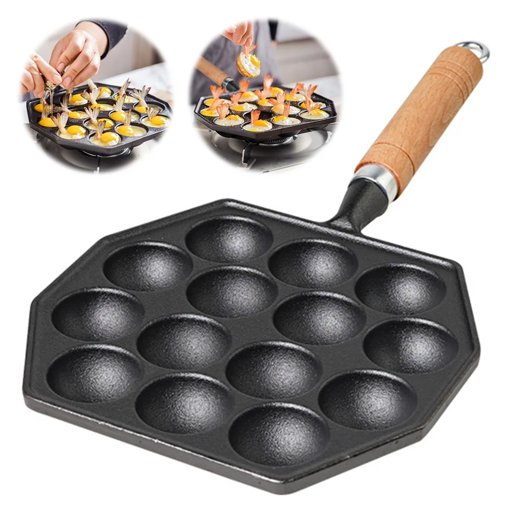 14 Holes Cast Iron Takoyaki Pan Nonstick Takoyaki Grill Pan With Oil Brush & Fork Takoyaki Maker Octopus Meat Ball Mold for Takoyaki and Round Pancakes Making