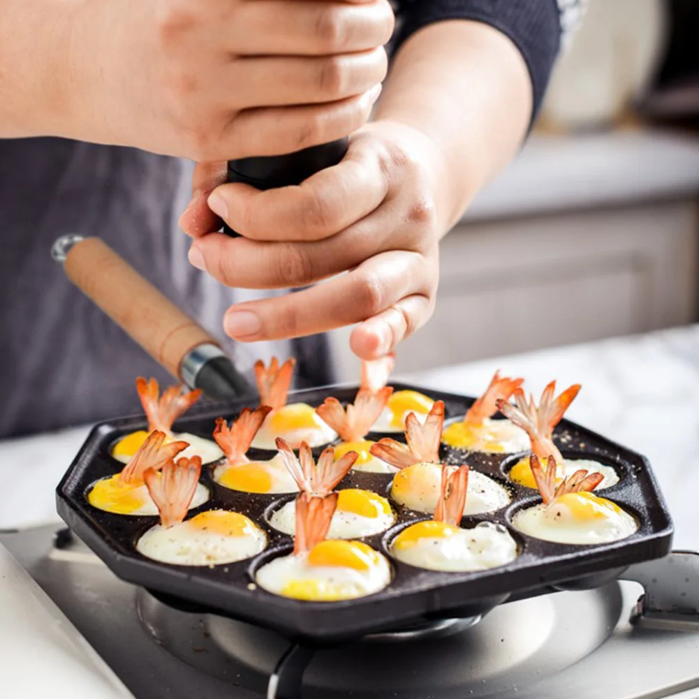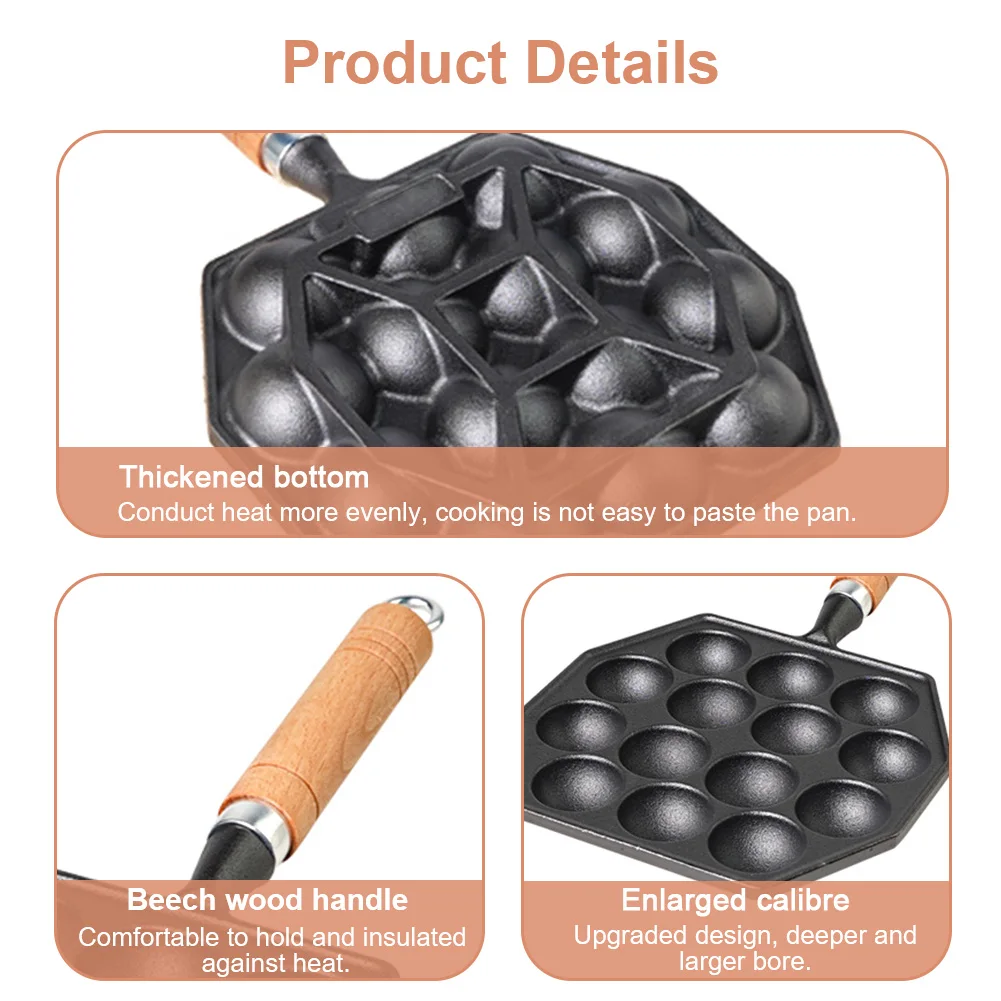 1. High-Quality Construction: Crafted from cast iron, one of the most resilient cookware materials, this takoyaki pan ensures long-lasting use. Its thick material retains heat effectively, enhancing the flavors of your dishes.