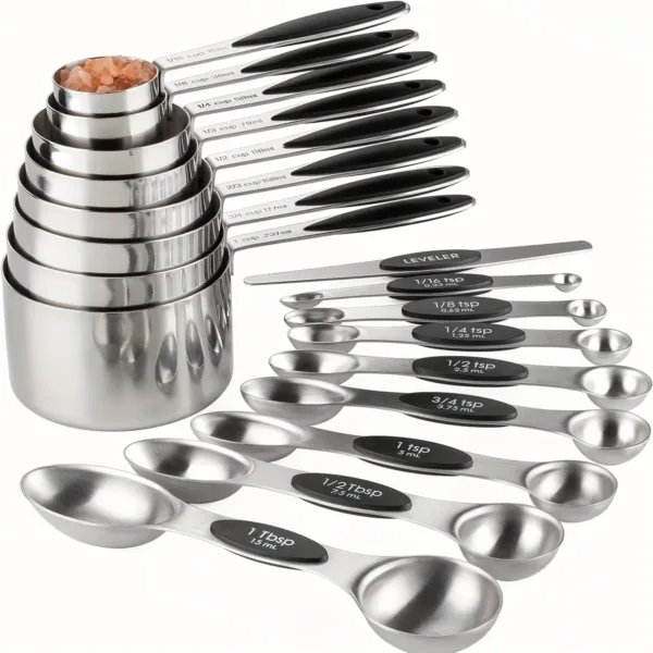 1. Elevate your baking and cooking game with this 17pc Stainless Steel Measuring Set, featuring dual-sided spoons and precision cups for accurate and reliable measurements every time.