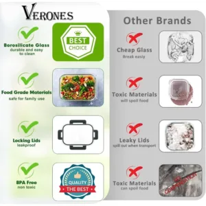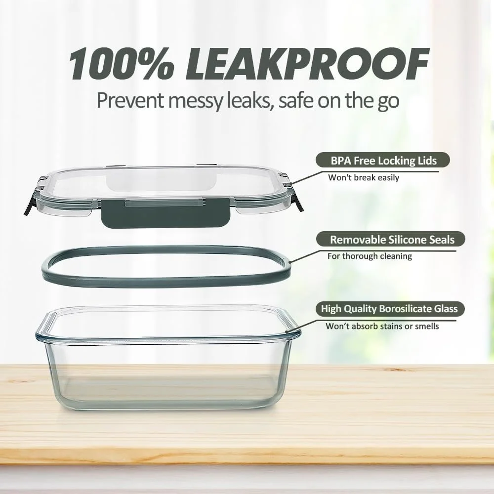GLASS MATERIAL EXCELLENCE IN QUALITY: Glass meal prep containers are made of superior quality borosilicate glass, for oven, microwave, dishwasher and freezer. Stronger than normal glass food storage containers, food can be stored in glass containers directly after cooking. The containers are versatile to meet your everyday food storage needs, suitable for use in prep meals at home or whatever you need for the occasion