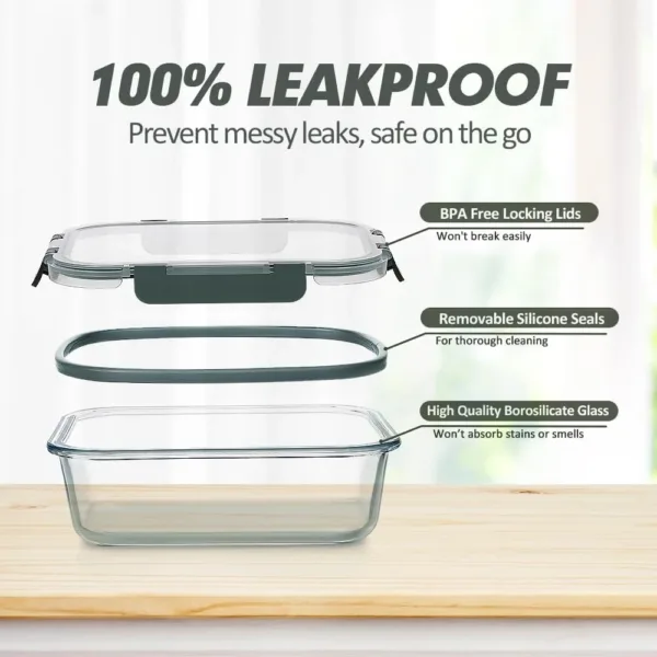AIRTIGHT LOCKING LIDS: airtight glass lunch containers use Exclusive of BPA snap-lock lids. Make sure there are no spills and leaks, keeping your food fresh, you will not have to put up with spilled soup or sauce staining your lunch containers again. The lid opens and closes easily and does not break or slowly stop working. Different sizes and shapes are great for various occasions and events