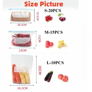 45PCS Silicone Food Storage Bags, Leakproof Reusable Zip Shut Bags, Refrigerator Fresh Wrap