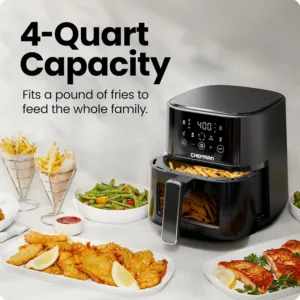 1. Air Fryer – 4 QT Compact Airfryer for Quick & Easy Meals, Features Hi-Fry Technology for Extra Crisp, Easy-View Window, Touch Controls with 4 Presets, Nonstick & Dishwasher Safe Basket – Black