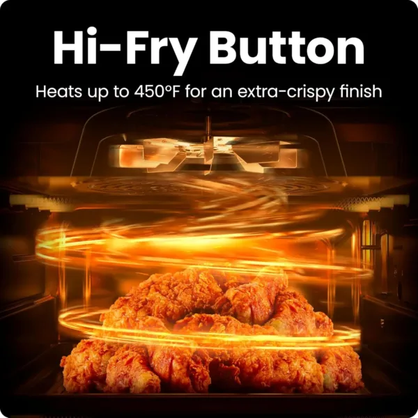 3. 450°F HI-FRY TECHNOLOGY: Achieve the perfect finishing crunch on your air-fried favorites. Increase the heat to 450°F during the final two minutes of cooking: ideal for extra-crispy chicken tenders and French fries.