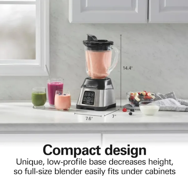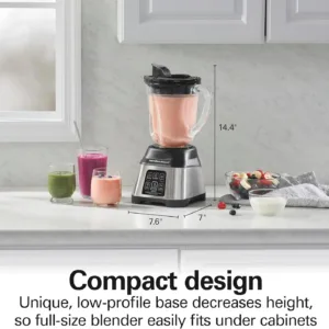 5. SLEEK, COMPACT DESIGN: The unique, low-profile base decreases height, so this blender for shakes and smoothies easily fits under cabinets and the controls are easy to reach.
