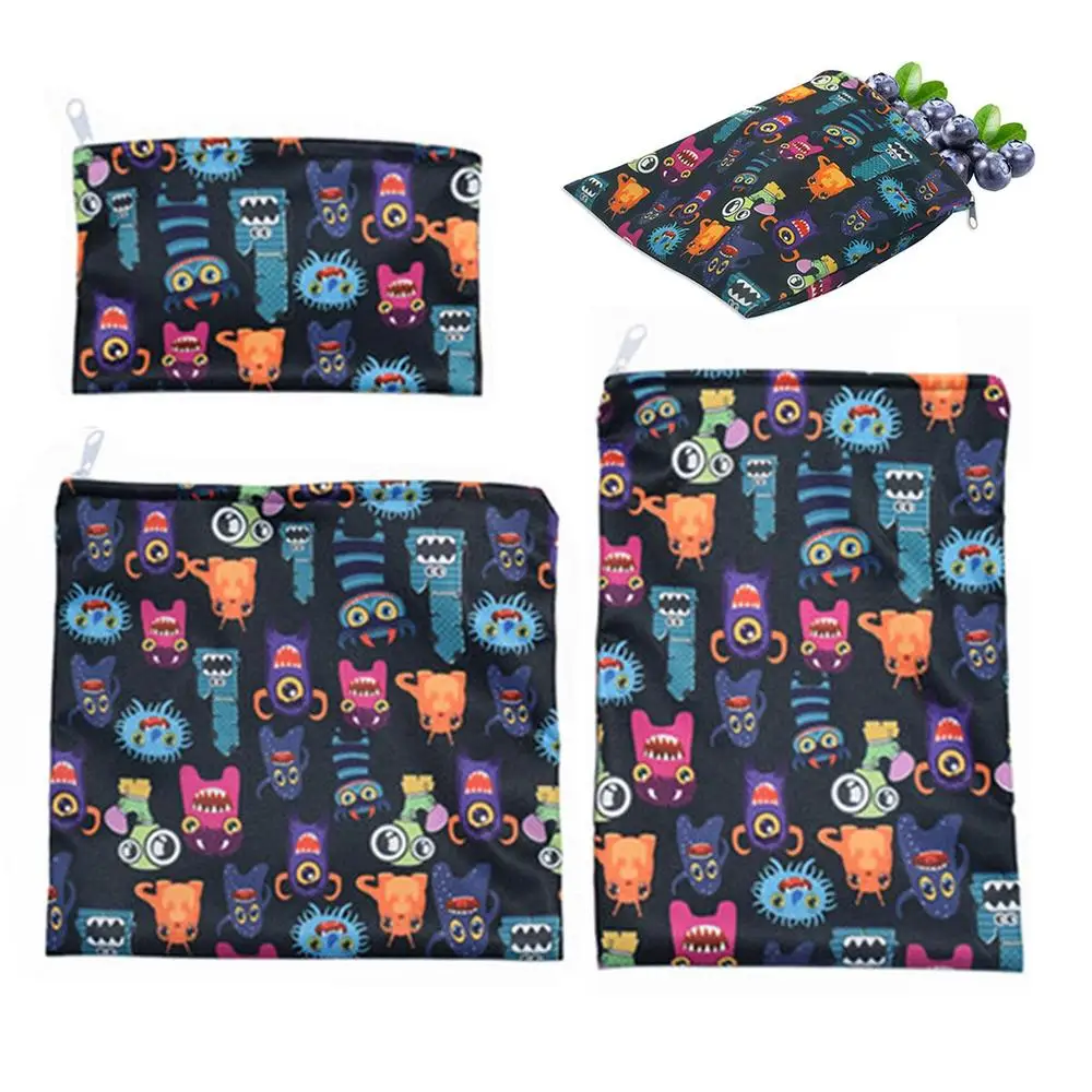 Cloth Snack Bags 3pcs Reusable Bags For Sandwich Dishwasher Safe Zipper Bag For Home School Office Picnic Camping Hiking Durable