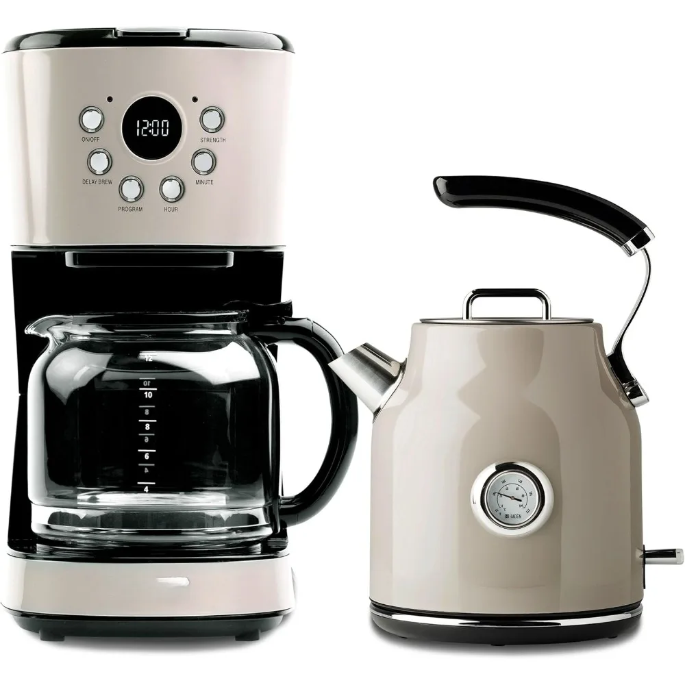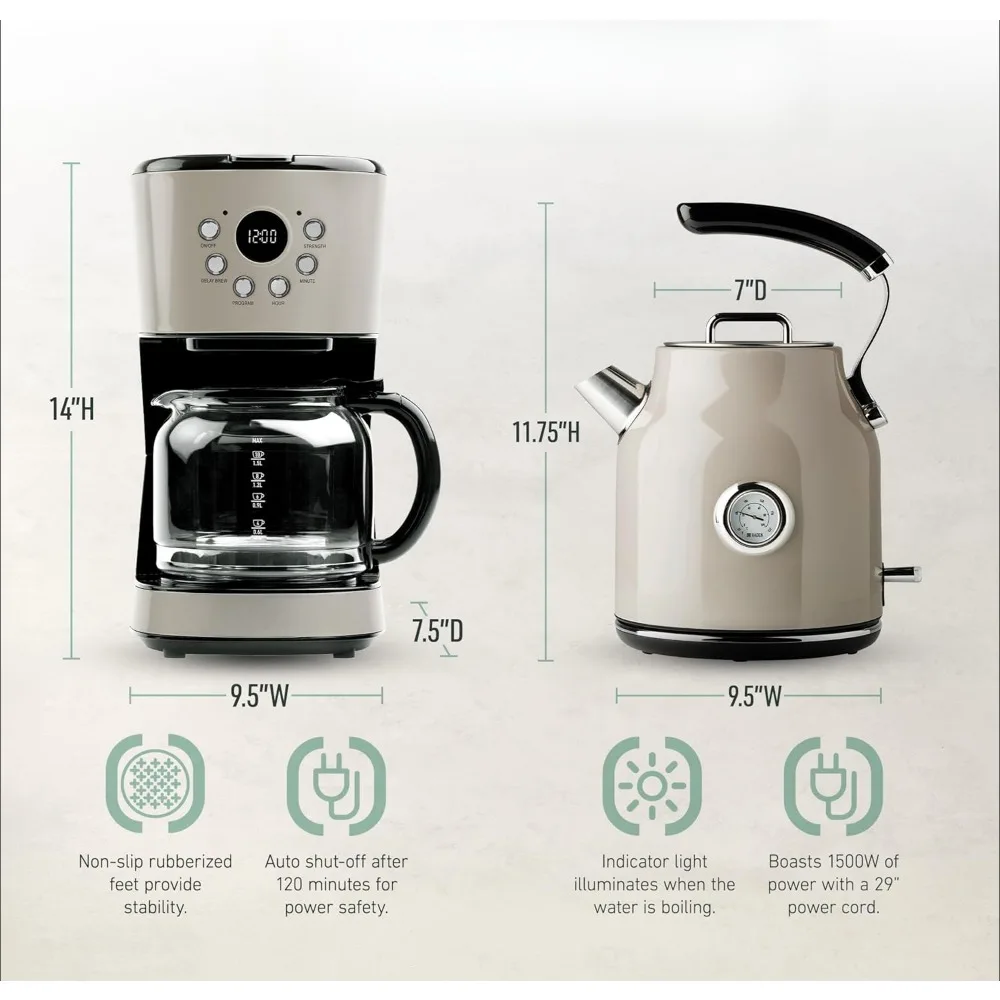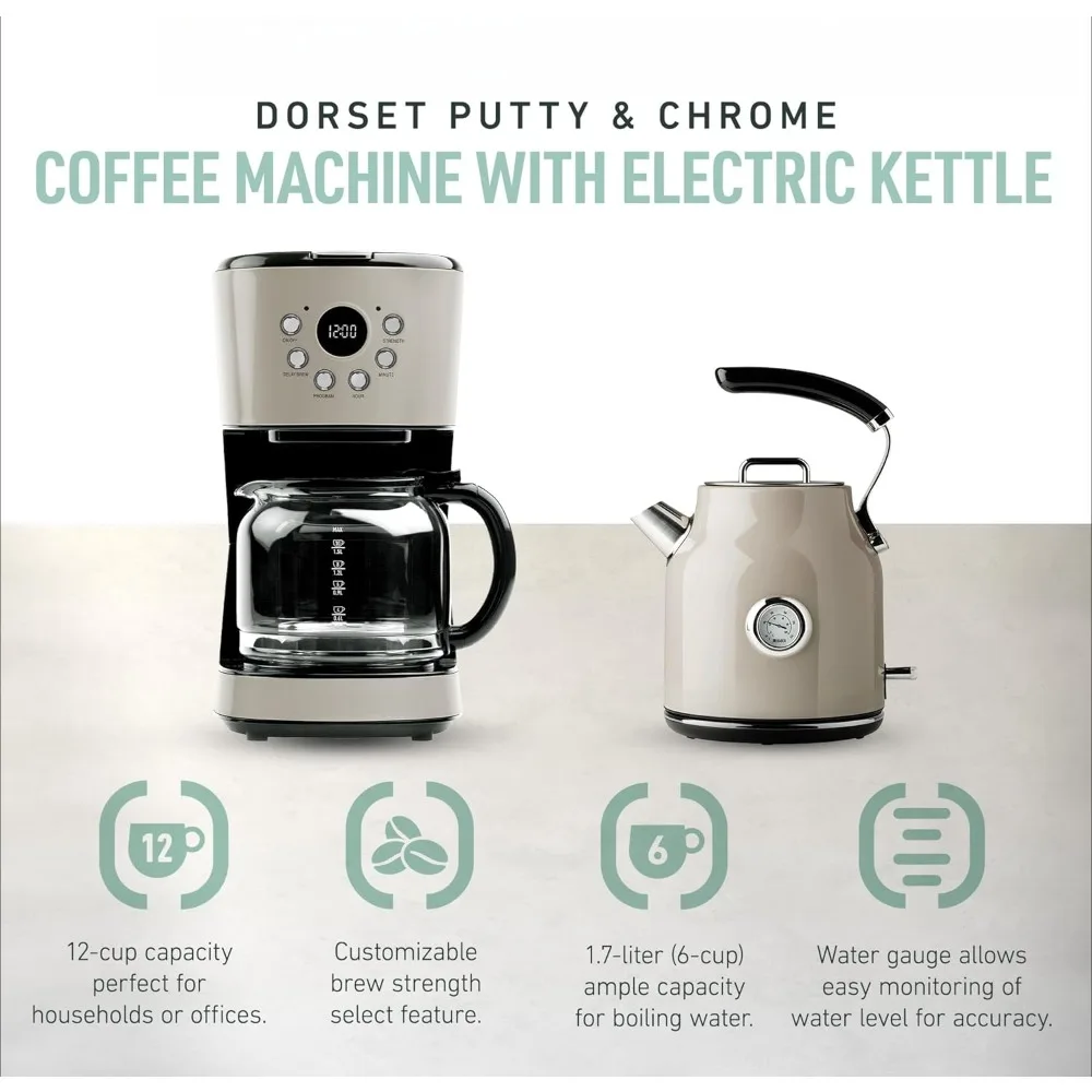 Coffee Machine, 12 Cup Drip Coffee Maker Bundled with Dorset 1.7 Liter Stainless Steel Electric Hot Water Kettle, Putty & Chrome