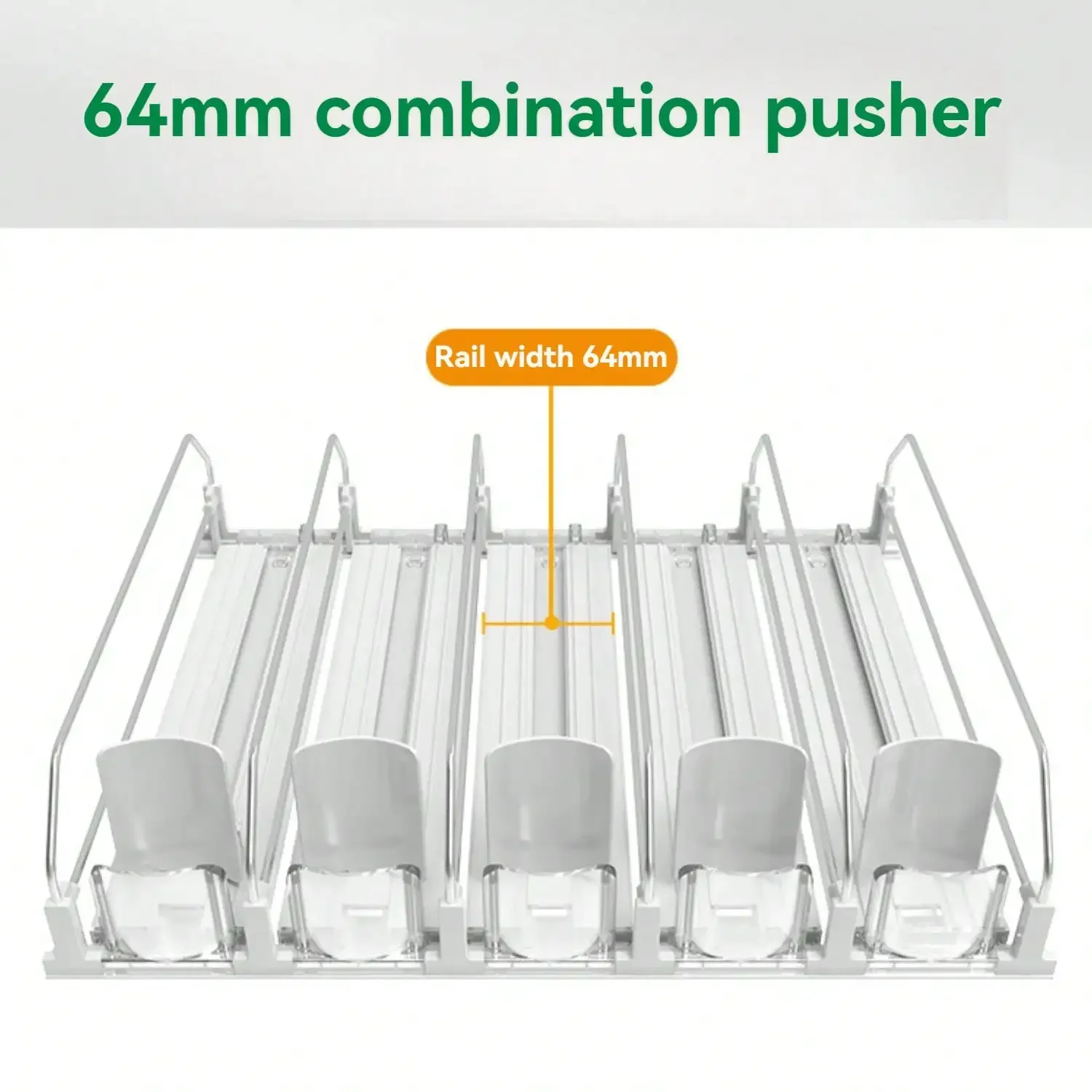【Sturdy Quality Material】 The fridge drinks organizer is made of durable and material, it can withstand low temperatures that is suitable for refrigerator use. The divider is made of galvanized iron wire. The push rod is made of ABS material, which has the good bearing capacity and strong wear resistance. Spring-loaded for high performance and durability. The horizontal rails are made of PVC.