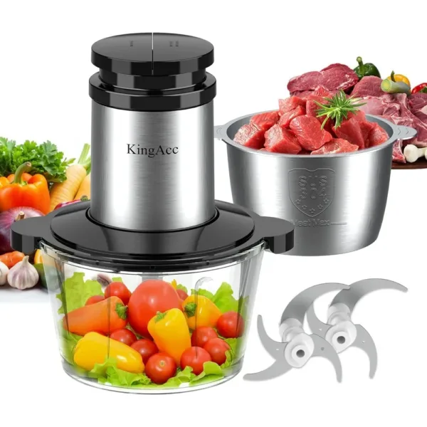 Food Processor, 500W Powerful Electric Meat Grinder Chopper With 2 Bowls, 2 Sets Blades Mini Meat Mincer For home kitchen Use