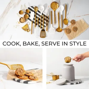 ✔ Makes A Great Present – Delight In Gifting Our Titanium-Coated Gold Serving Utensils Set, Where Functionality Meets Sophistication. I For Both Excellent Cooking And Serving In Style, This High-Class Stainl Kitchen Utensils Set Brings A Touch Of Luxury To Any Kitchen. An Exceptional Gold And White Kitchen Accessories Set That’S As Stylish As It Is Practical, Making It An I Contemporary Gift