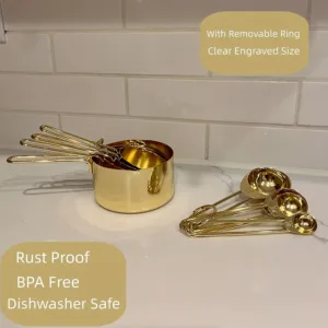 1. Shine bright in the kitchen with this Golden Measuring Cups and Spoons Set, a stylish and durable collection perfect for all your cooking and baking needs.