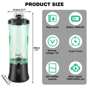 【Powerful Portable Blender】Our portable smoothie blender features 6 sharp stainless steel blades, low working noise, and a rotational speed of up to 18,000 RPM, allowing you to easily crush ice cubes, frozen fruits, and vegetables. Make a nutritious smoothie or milkshake in just 30 seconds.