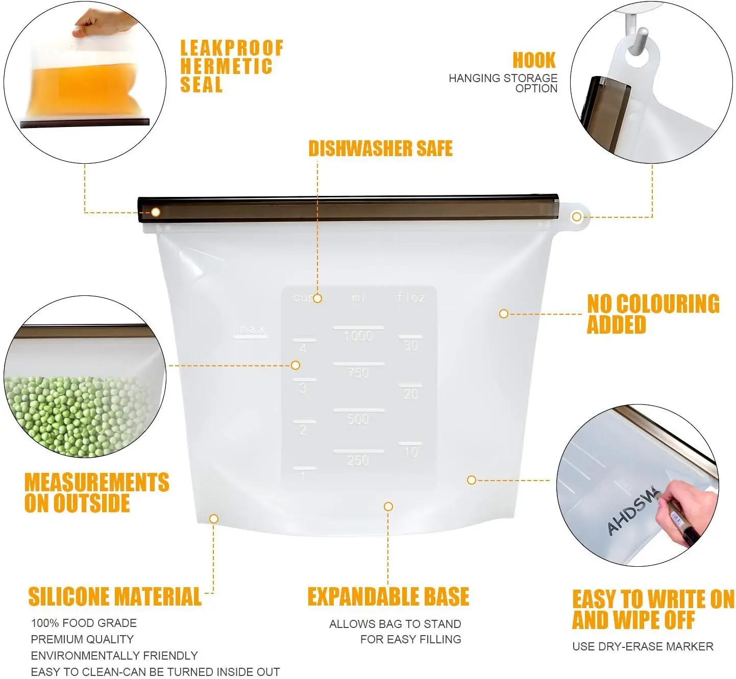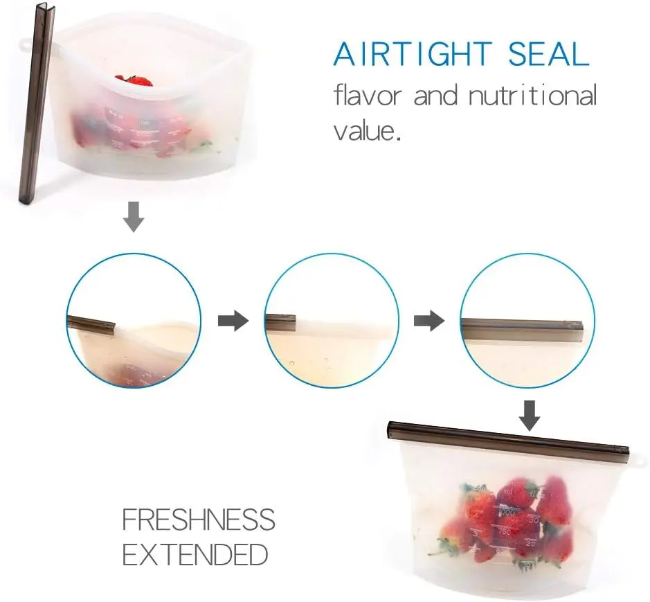 Our silicone food bags are Airtight, Leakproof and -locked to keep food or liquid contents for much longer while eliminating any odors. They are when planning healthy meals for work, family picnics, travel & camping